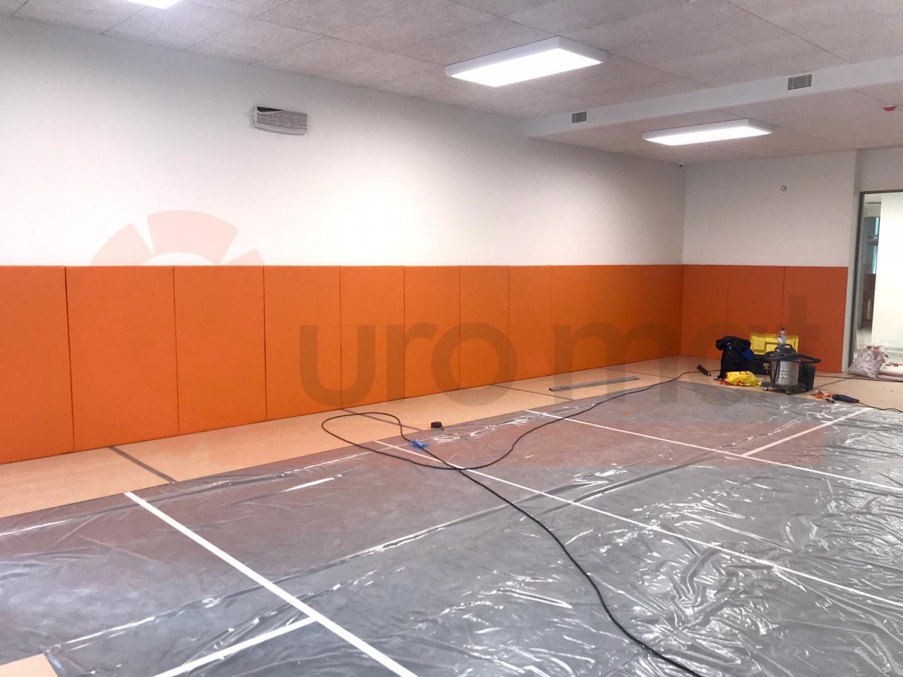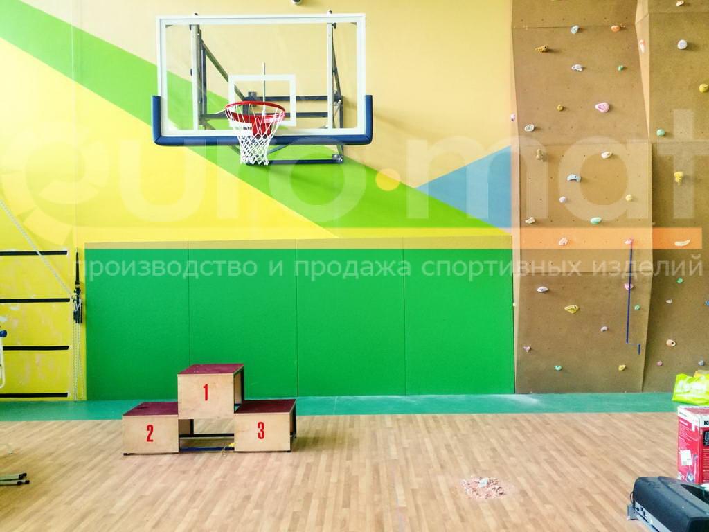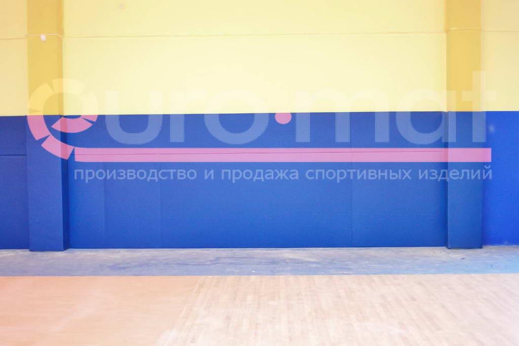 Еще в одной школе подготовили спортивный зал к занятиям и сделали его безопасным. Изготовили и произвели монтаж стеновых протекторов. На этот раз они выполнены из плотной ПВХ ткани с амортизирующим наполнителем на твердом основании их ХДФ. В соответствии с требованиями, протекторы съемные, надежно крепятся к стене при помощи липучки. Соответствуют правилам противопожарной безопасности.