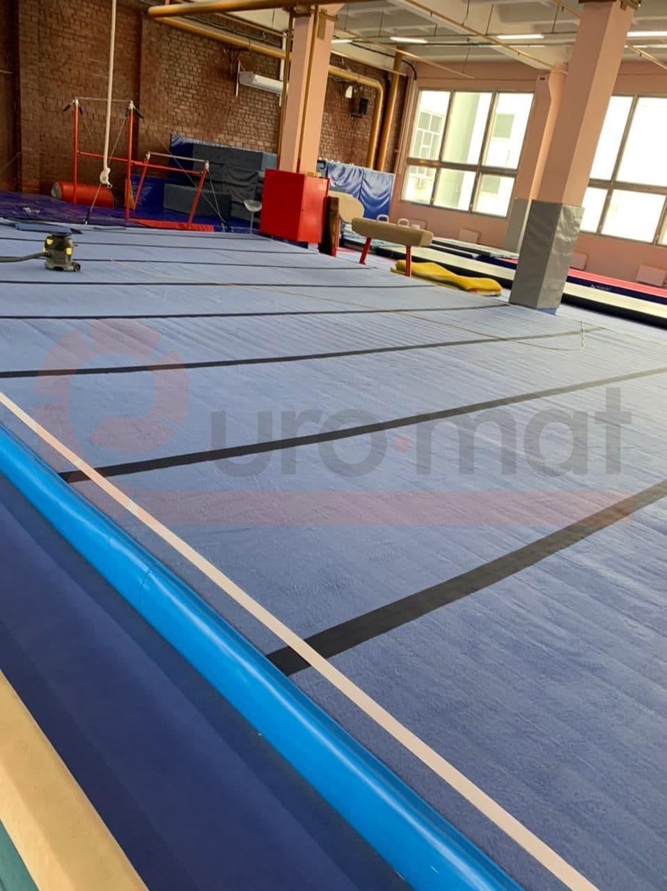 Клиент решил заменить старое спортивное покрытие на новое и обратился к нам. Мы изготовили для школы акробатики покрытие ролл-гимнаст с ворсом.