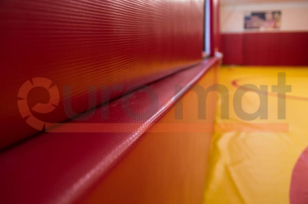 Для одного из залов борьбы изготовили и произвели монтаж стеновых протекторов из ПВХ ткани на твердом основании. Особенности зала таковы, что часть протекторов крепится напрямую к стене при помощи липучки, а часть – на металлический каркас. Для того, чтобы придать залу уникальный стиль и узнаваемость, нанесли на протекторы фирменную символику колледжа.
